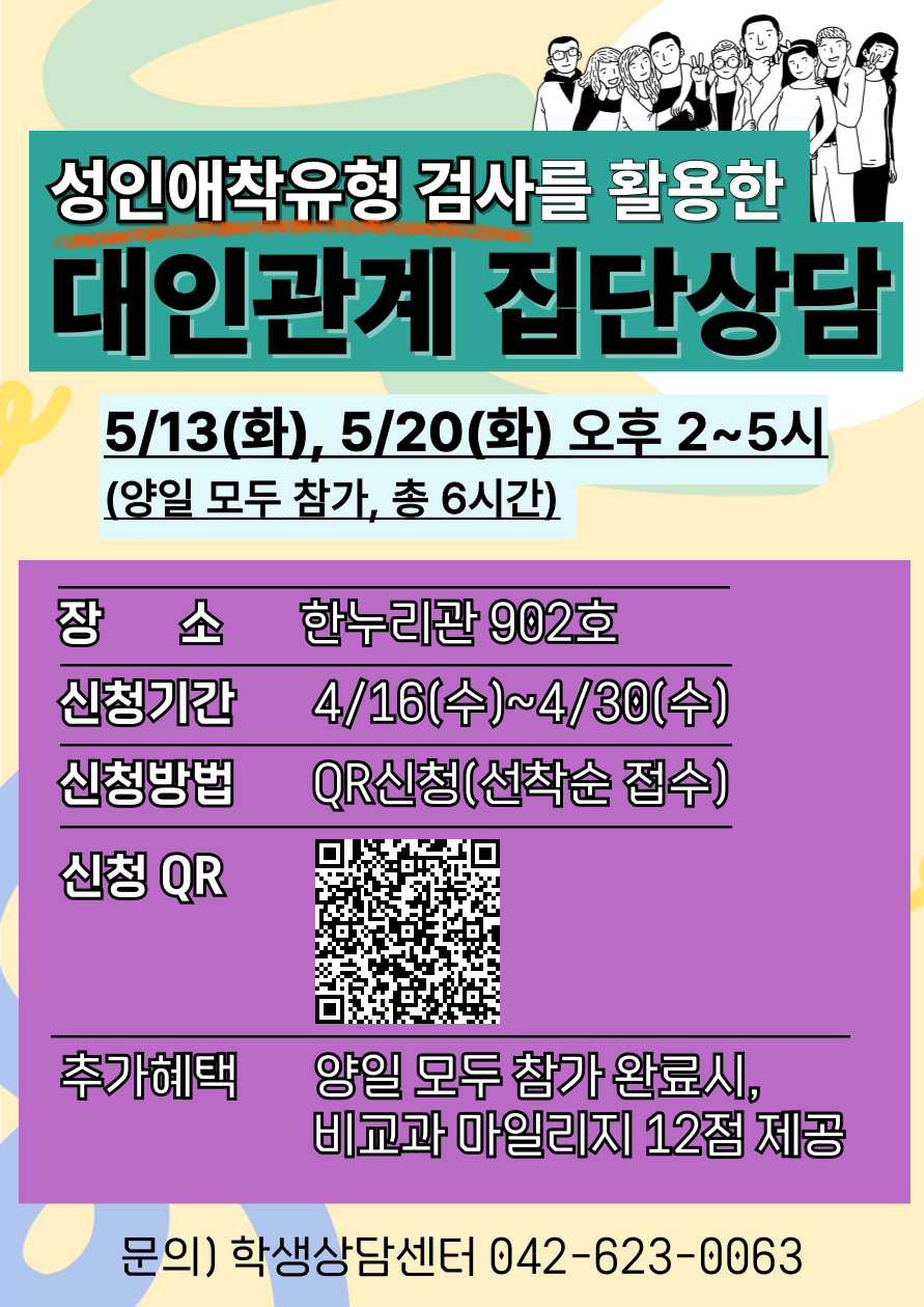 학생상담센터에서 성인애착유형 검사를 활용한 <대인관계 집단상담>을 진행합니다.